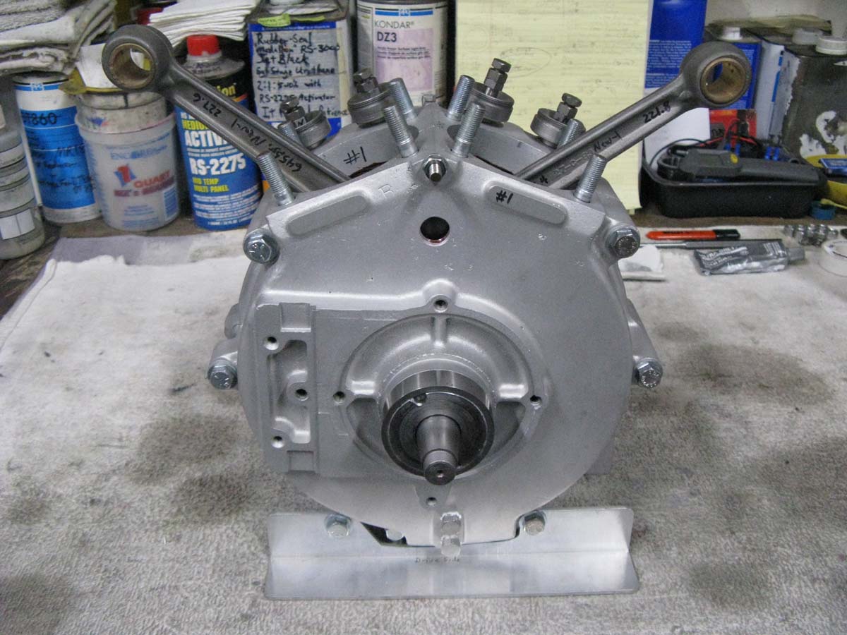 These motors have the late '40-'42 heavy duty rods. They are plenty strong. They have new lower races, and good upper bushings honed to fit. The pistons are "Ross Forged" pop-up pistons, with the pop-up of around .154". So, the heads are "Fly-cut" for clearance equal to the pop-up. Then, they use special copper head gaskets of .050" thickness. That give the motors a .050" "Squish" area above the piston. This is a good number for some extra power. They have very good "NPR" metric rings that are high tech, and light. The same as I race with for LSR records on Nitrous!