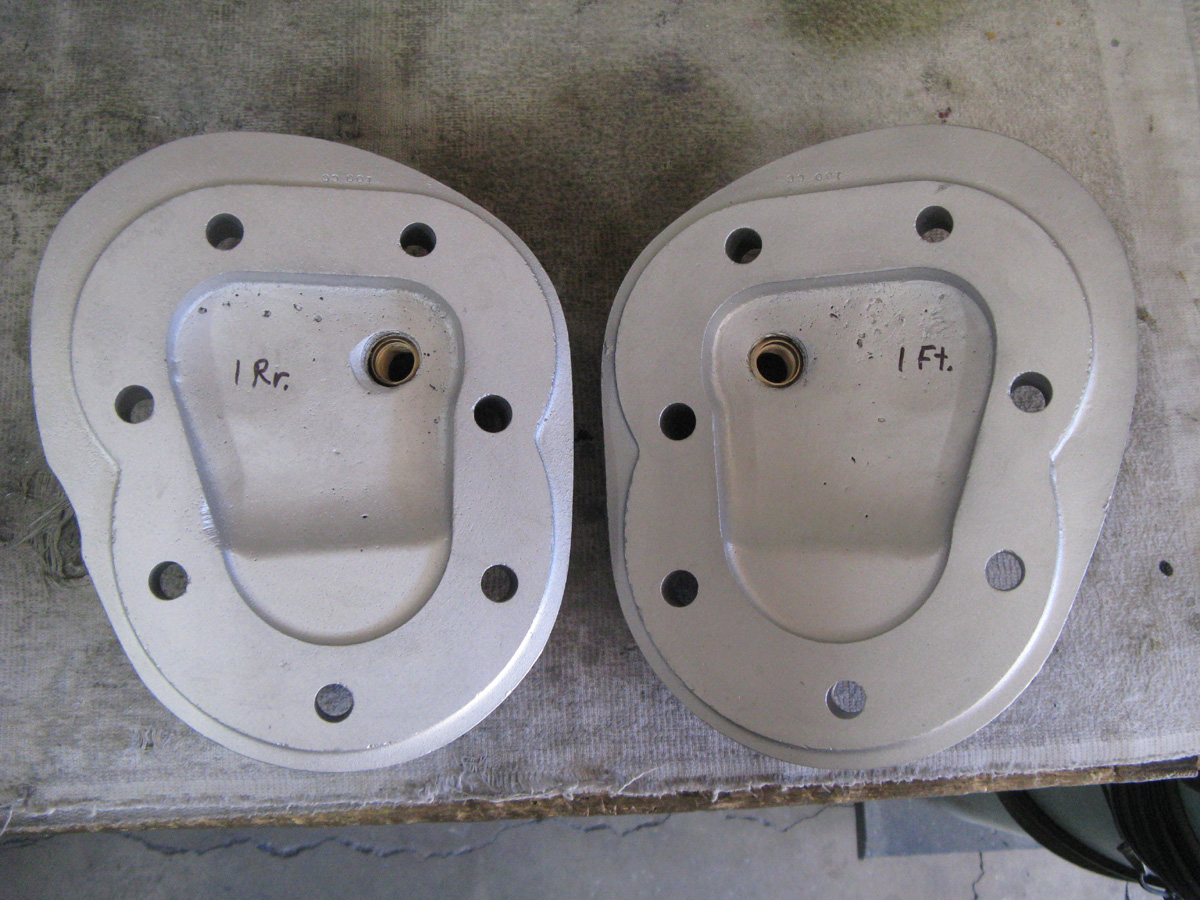 The heads are good late "un-milled", with any chip repair done. I gave up on factory head bolts a long time ago. They just strip out the threads in the cylinders. I make studs instead, with a screw-driver slot, and individualy numbered, so they go back in the right holes. Then they have the early beveled edge washers, with ARP Grade-10, 12 point "Flange Nuts". This is a real improvement, and looks good as well. Just torque the copper head gaskets to 50 Ft/Lb. They will NEVER blow out.