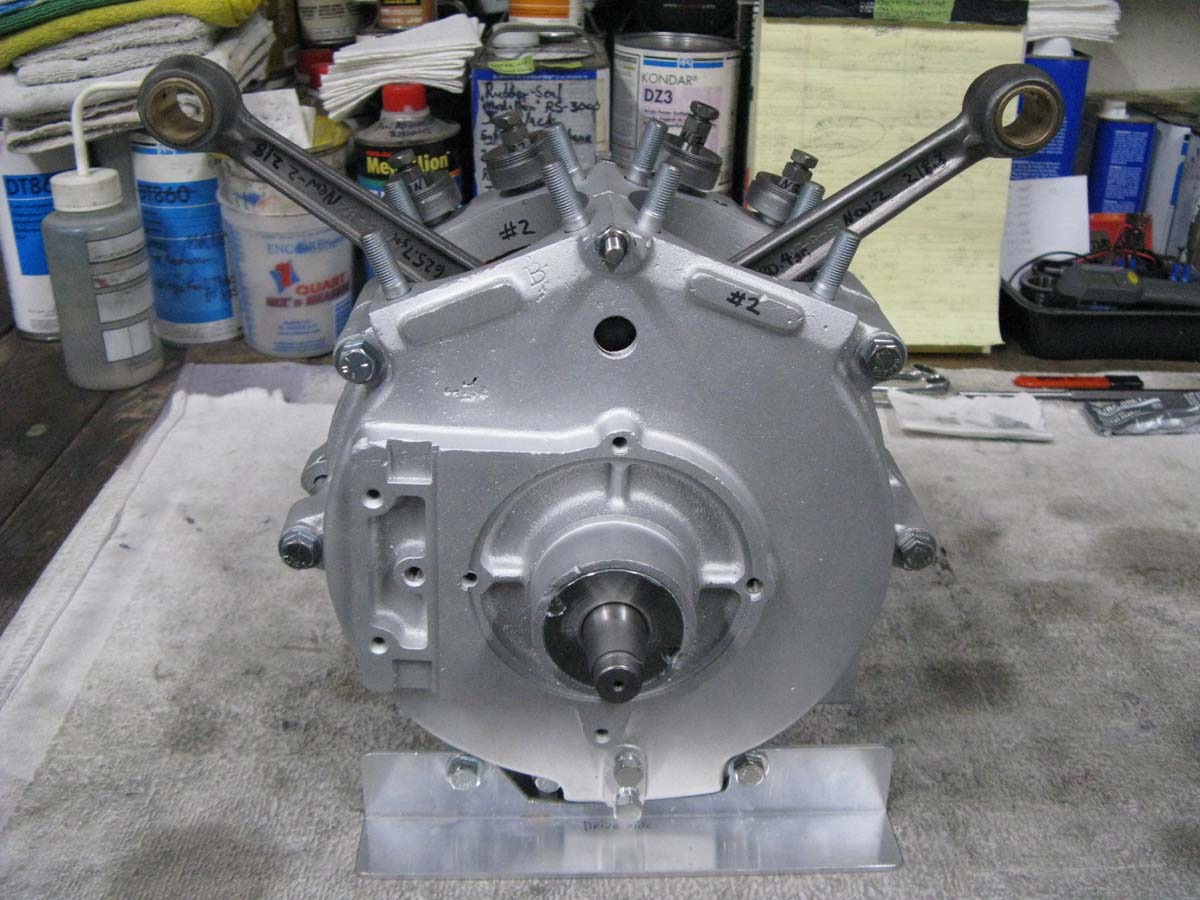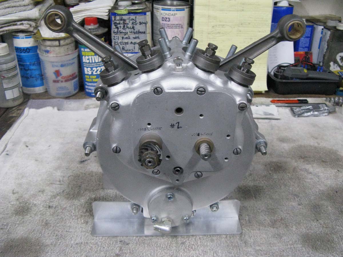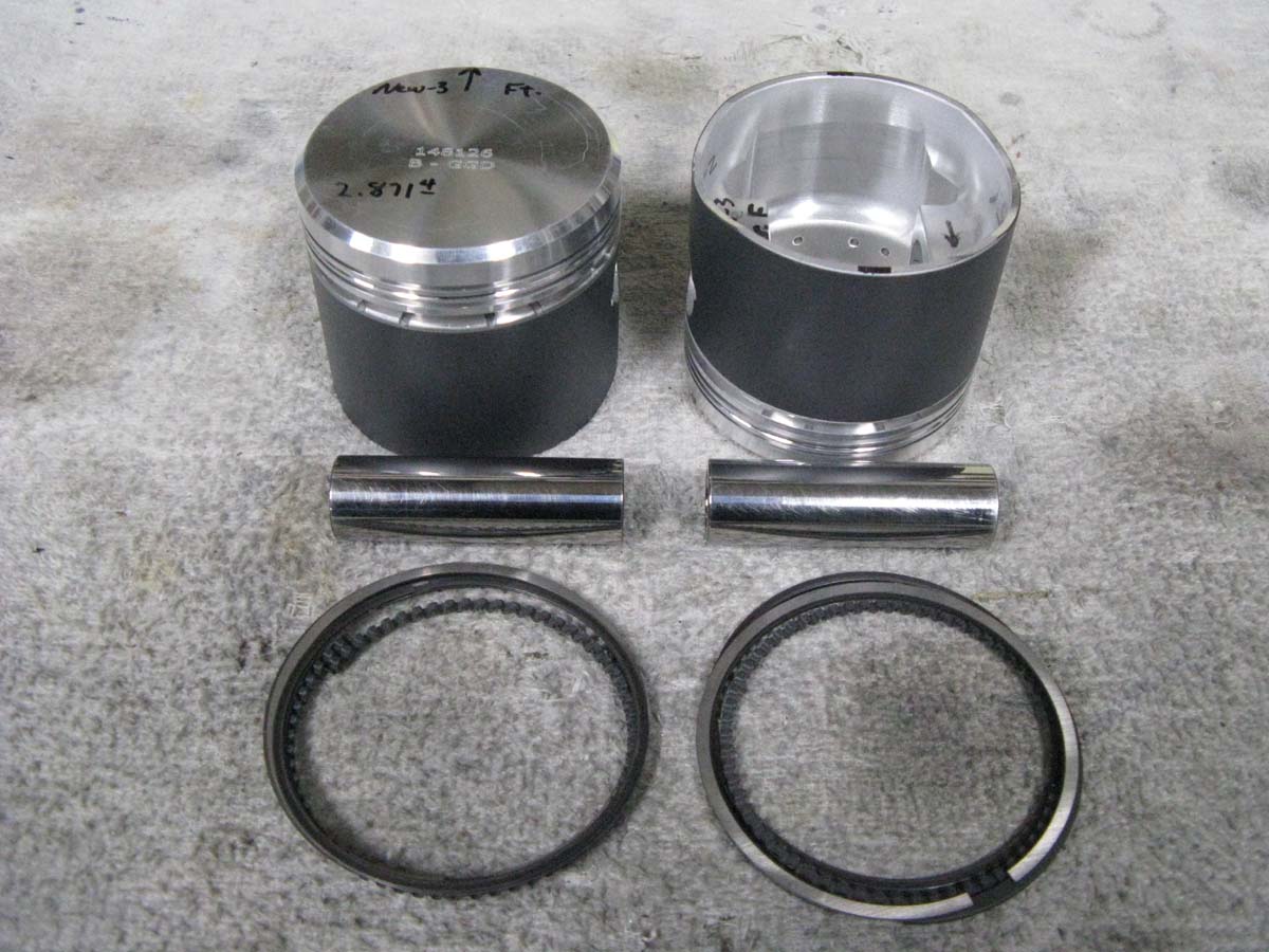 These motors have the late '40-'42 heavy duty rods. They are plenty strong. They have new lower races, and good upper bushings honed to fit. The pistons are "Ross Forged" pop-up pistons, with the pop-up of around .154". So, the heads are "Fly-cut" for clearance equal to the pop-up. Then, they use special copper head gaskets of .050" thickness. That give the motors a .050" "Squish" area above the piston. This is a good number for some extra power. They have very good "NPR" metric rings that are high tech, and light. The same as I race with for LSR records on Nitrous!