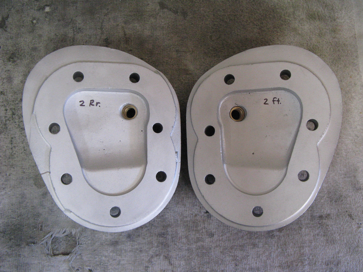 The heads are good late "un-milled", with any chip repair done. I gave up on factory head bolts a long time ago. They just strip out the threads in the cylinders. I make studs instead, with a screw-driver slot, and individualy numbered, so they go back in the right holes. Then they have the early beveled edge washers, with ARP Grade-10, 12 point "Flange Nuts". This is a real improvement, and looks good as well. Just torque the copper head gaskets to 50 Ft/Lb. They will NEVER blow out.