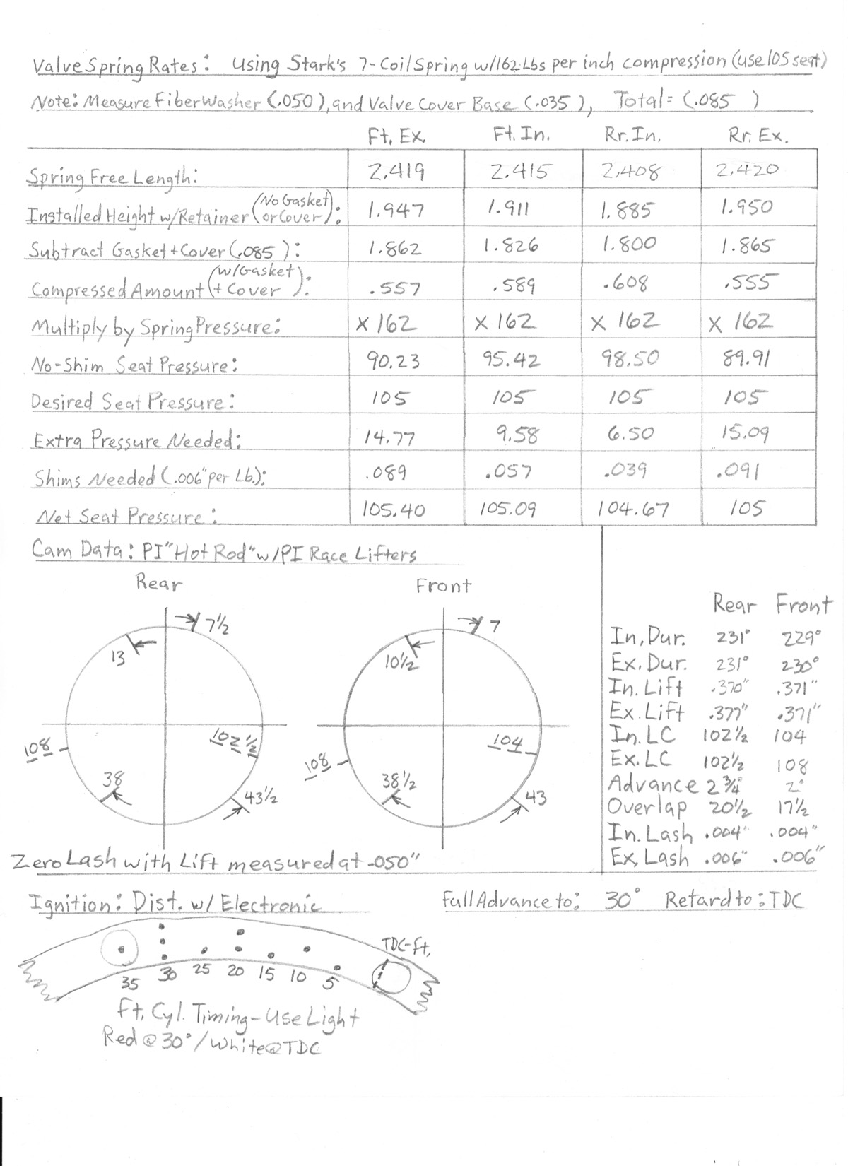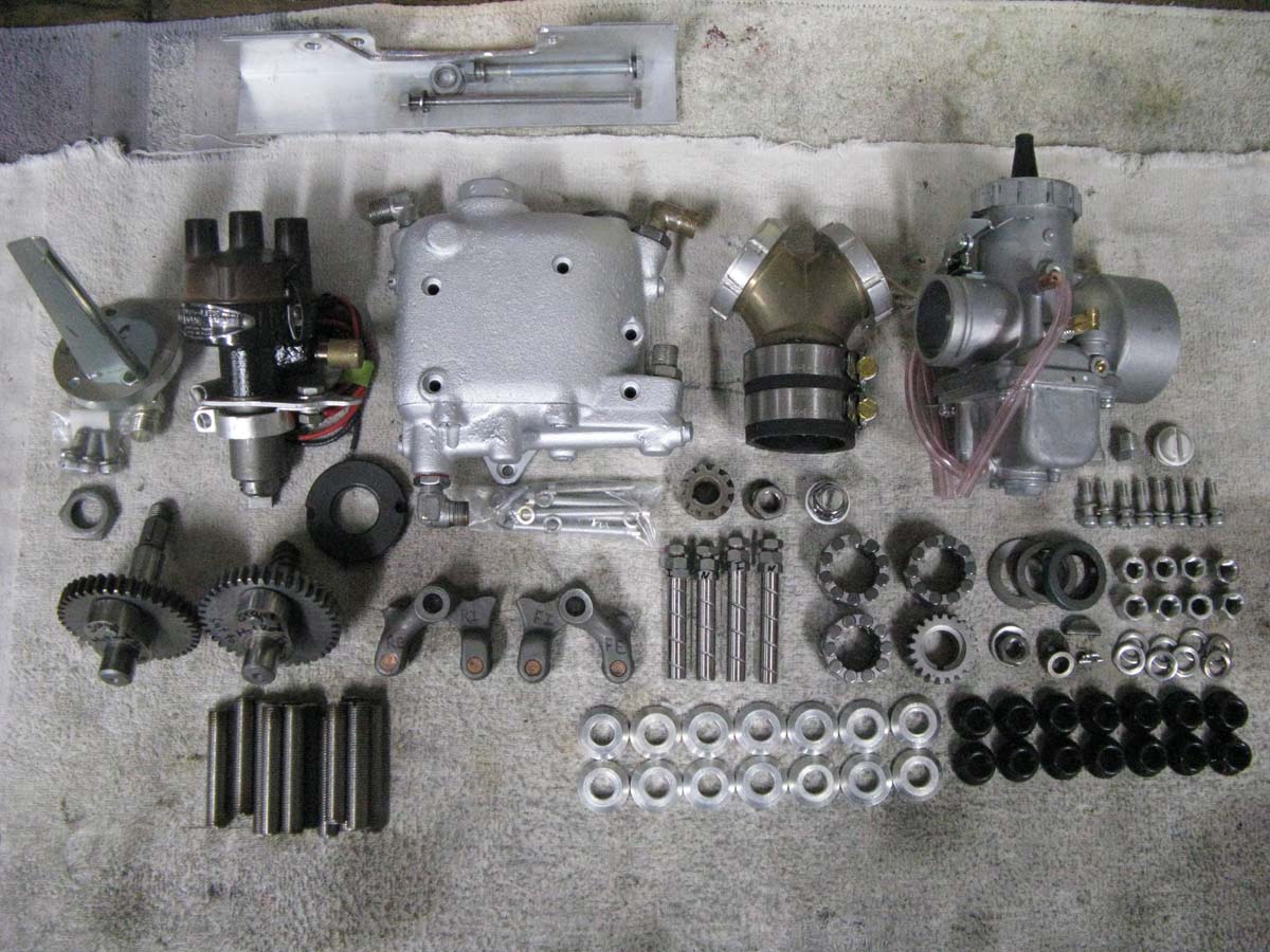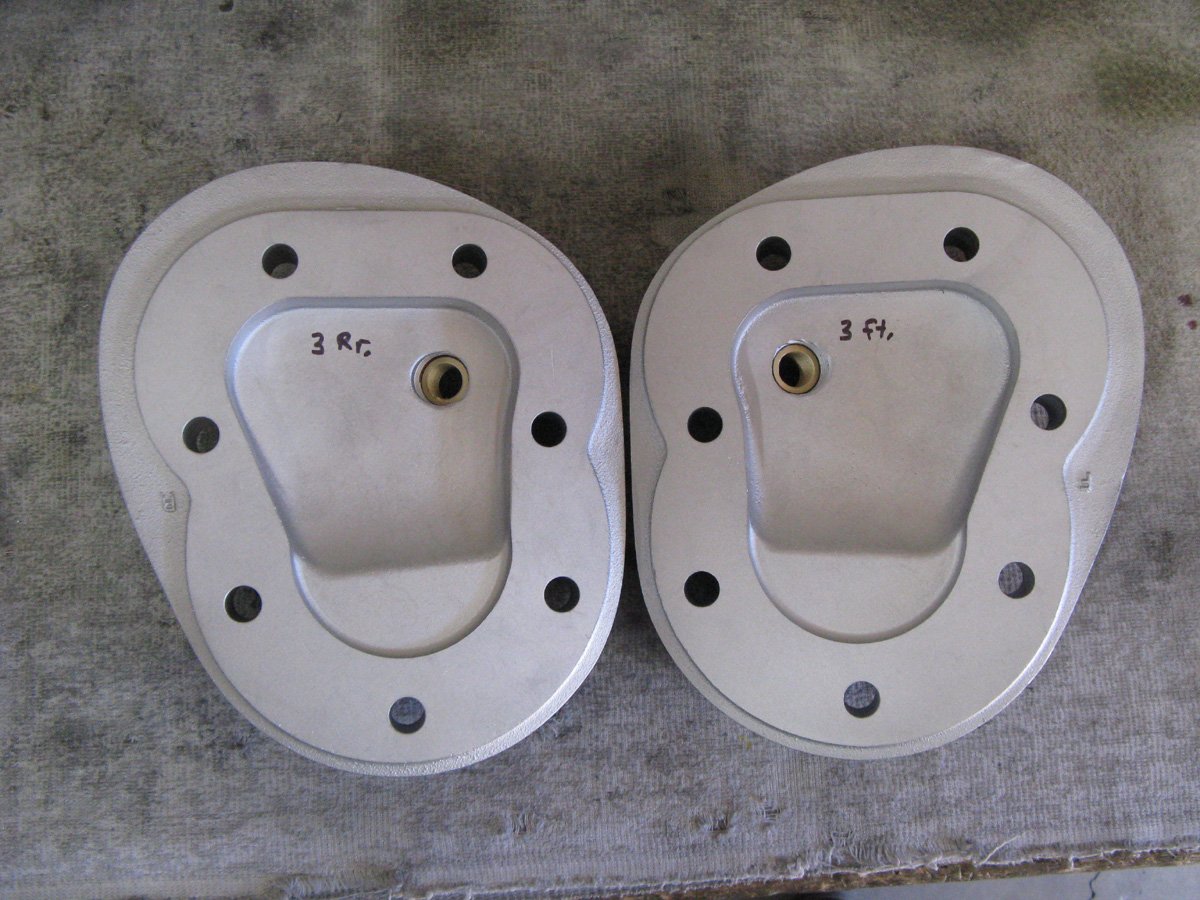 The cylinders were good rebuildable cores, that I went through to as new "Blue-Printed" spec. I did sleeves where needed, as well as new valve seats where needed. I did new guides, and honed to fit the valve stems. I added Teflon seals to the intake guides. Then I did "5-angle" valve jobs. The bores are honed for a .006" bore to piston skirt clearance, and the pistons have a robust deisel skirt coating for long life. They have special 7-coil valve springs of my design for no coil-bind, and more tension. I installed my fiber washers, and shim kits for optimum spring pressure. They all have my Titanium light Retainers, and new keepers. They also have new chrome valve covers. The intake valves are Manley extreme duty stainless steel, and the exhausts are Kibble-White "Black Diamond" from Gary Stark.