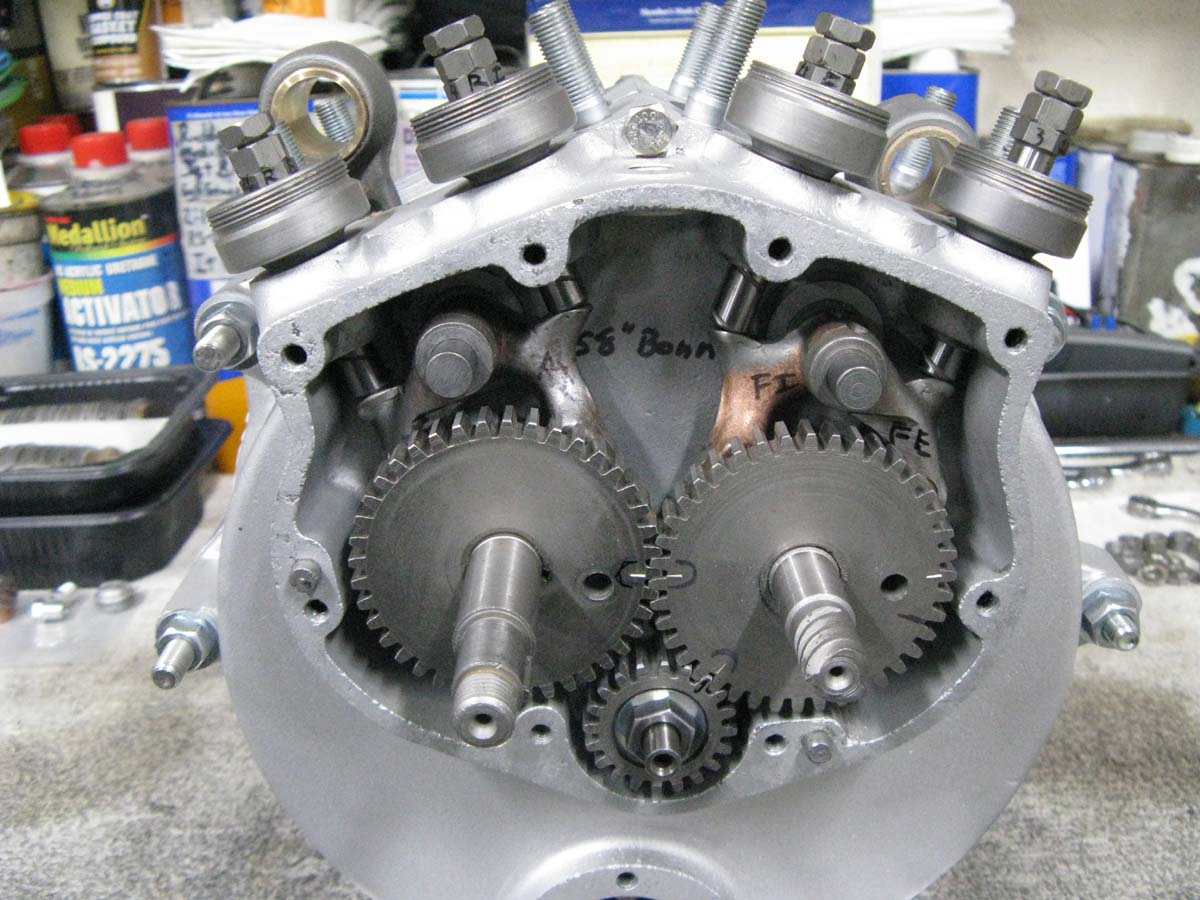 The bottom end is completed, with a set of heavy duty late Scout rods. The balance job, and flywheel truing is done, and perfect. The cam chest is all finished, and I am using a NOS set of original Scout "Bonneville" cams on new shafts. I am using a good set of original Scout "Bonneville" lifters that I have upgraded. Scout lifters (as well as Chiefs) get a lot of wear on the arched pads, where the push rods are lifted from. I have a grinding jig for these arched pads, when making my new racing lifters. I use "Stellite-1" rod, and do a Tig weld repair to these pads, then they get precision ground to a better profile than the factory did. The "Stellite-1" hardens to a Rockwell 62-64 when welded, so there is no need to re-heat treat the parts after. Then, I add a set of my "Needle Bearing Rollers" for long life, and better performance. Indian always used a solid pin in a solid roller, and with any kind of lift, or spring pressures, the rollers would stop rolling at the top of valve lift, and skid down the rest of the cam lobe, causing premature, and serious damage to the cam lobes. So, it is absolutely impossible to now find a usable set of Bonneville Cams, or lifters. Mine are NEW cams, and improved lifters. Many years ago, I was seeing these selling for around $1,200.00 per set. My performance cams/lifter package will out-perform these cam/lifters, but these are the factory "Hot Rod" parts in new shape. I was going to keep them, but I figured that if I added them to the cases and flywheels that have a huge Bonneville racing history, then I would end up with a "True" Bonneville Scout, that has "Bonneville DNA" all over it.