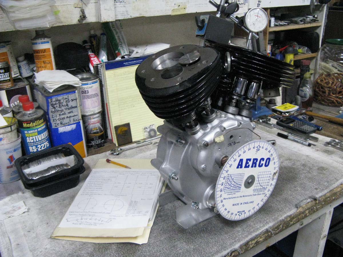 Here is my last of the (8) Scout Stroker Motors, I had enough good left-over parts to be able to build yet another 58" Scout Stroker motor. I had my rear cases from My Twin-Scout LSR bike left-over, as well as the T&O flywheels that I used for (4) Land Speed records. I had an issue at Bonneville, where ALL the cylinder nuts, and (7) of the cylinder studs vibrated out of the rear motor at over 155 mph. It was my very first "Streamlined/NOS-Oxide run", and the bike was really reving high. The cylinders lifted 1/4" up, and a lot of oil was coming out onto the rider. The top motor mount was bent from the cylinders trying to rise. Luckily, it stopped the rise, and it suffered NO cylinder damage (or pistons). But, the right front cylinder base stud was loose, but still there, and the cylinder movement cracked the right case near that stud. I had the crack welded professionally, and I decked the block a couple thousands. In (6) weeks from the day of the damage, I was back at Bonneville for the next meet (The World of Speed), with these cases, and it set the Land Speed Record of 156.788 in the "1,350 APS-VG" class record (1,350cc Altered Partial Streamlining-Vintage Fuel)! These are great cases, but for the next year, when I developed my "Big Bore" motors, I replaced them. They are still great cases due to all the other good work that went into them. I kept all the flywheel, shafts, and other parts to use on some other future build. This is that build!