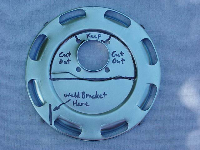 I provide a sheet with templates in my CV carb kit if you wish to modify an Air Cleaner back by yourself. An original style Linkert AC back must have a special tab made, and welded on to support the carb's choke cable. A large piece of the AC back must be cut out, and replaced with a new patch, so that the (4) mounting holes, and the carb opening hole can be drilled, and cut to accommodate the Keihin carb. For a semi-skilled fabricator, this is not a difficult job. It takes me (3) hours to complete one. The picture below shows the area to cut out, and the placement for the choke tab.