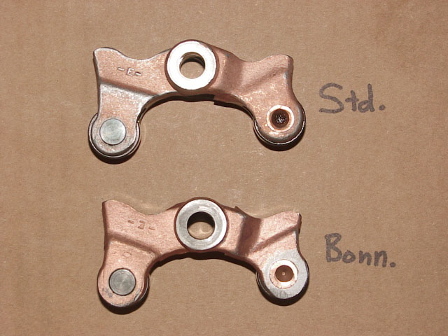 To identify a Standard lifter, measure the distance from the center of the roller hole to the center of the pivot shaft hole, and the distance is roughly 1.460". The Bonneville lifter will measure roughly 1.375" from center to center. On any cam, when switching over to the Bonneville lifters, the overlap increases by 20 degrees (while lobes centers move 10 degrees less), and this will significantly change the way the bike runs. In some cases, it will lower the feel of low RPM power and torque, but the higher RPM power will significantly increase. My research shows that the Standard lifters are only appropriate for Standard cams, and Bonneville lifters are the better choice for Bonneville, and ALL other aftermarket performance cams. I arrived at this conclusion by comparing various Indian performance cams measured with both Standard, and Bonneville lifter combos, and then comparing the data with known cams that have been developed for the Harley-Davidson Panhead, and Shovelhead configurations. In fact, for Indian cams with similar duration numbers to H-D cams, the Bonneville lifters get us closer to the established opening, and closing figures for the H-D performance cams. Most importantly is the closing point for the Intake valve. The Bonneville lifter advances this closing point by 10 degrees, and allows the piston to build more compression on the compression stroke. Again, we are approaching the ideal numbers found in established H-D performance grinds by using the Bonneville lifters.