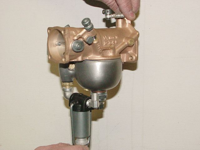 Another problem with Linkerts are the floats. There have been so many choices for float materials, and particularly their weights. A float is supposed to displace fuel, and float! Brass floats, DON'T! Cork floats fail, but the new black plastic floats seem pretty good. The proper setting for a float is, where, when the float is all the way up, closing the needle and seat, the top of the float is level with, and 1/4" below the top of the bowl. A correct float setting is important with any carb. If the fuel level is too high, it will have an overly rich nature. Too low of a float level will make the bike always seem lean. This has to do with the venturi velocity induced vacuum signal that has to lift the fuel through the fuel nozzle. It takes more vacuum to lift fuel from a lower location.