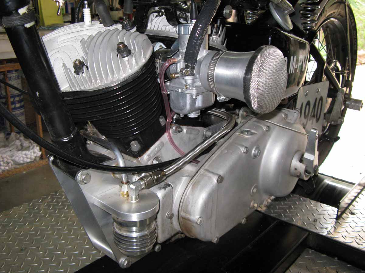 For an air cleaner, I have found a certain K&N that mounts to the 36VM, and has a round element about 6" diameter, and closed off flat at the outer side. You can actually silicone glue the chrome Indian Script cover to this rubber flat outer surface. There are also some velocity stack options out there as well. In the future, I will offer exact jetting specs for these carbs, but for now, all I did for the smaller, and larger carbs was to raise the needles by (1) notch, and set the idle speed. They worked great right out of the box. More later. Some kind of a carb support bracket MUST be made to support the carb from moving, or it will loosen the manifold at the cylinders! Either weld a tab on the bottom of the manifold adapter, or make a bracket that comes off the float bowl screws. Obviously, you will need to change out the throttle grip with a modern style (non-original).