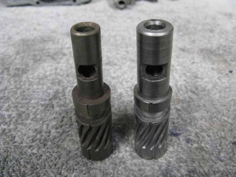 Here is a picture showing a 1938-1939 small 1/2" feed plunger, on the left, and a 1940-1947 larger 5/8" feed plunger on the right.