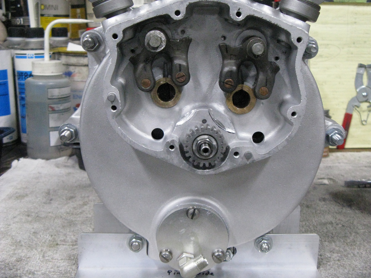 Here are some other mods that I like to do. I modified the cases to use the 1947 Chief oil sump "Scraper". I do a special lightening job to the flywheels to lighten them over-all, while maintaining outer mass for high RPM inertia. I rotate the push-rod guides to put the oil groove on the right (uphill) side, then precisely hone them for a .001" fit to new spiral grooved push-rods. I add a drive race seal, like the '52-'53 Chiefs. I use thin "Brown Paper Bag" cylinder base gaskets for good sealing, and a tiny bit more compression. I use Teflon valve guide seals for the intakes only. I have Cometic Gaskets make me .050" thick copper head gaskets custom for my modified combustion chambers. I gave up on factory head bolts a long time ago. I custom make stainless steel studs, and use the older Indian chamfered washers, and ARP Grade-10, 12 point "Flange Nuts" at just 50 Ft/Lb of torque. Much better head clamping (no blown head gaskets). I had these "Dick Holt" cylinders "Nikasiled" for a much harder surface. The original iron bores are soft, and wear quickly (they also score pistons when it gets hot!). I use a piston coating company that has the best coatings. They do a Ceramic top coating to cool the piston tops, and I use their Deisel skirt coating, which is very tough, and protective. Without their coatings, I would ruin a top end after every run! I also make special "Manganese-Bronze" thrust washers that go to the left of the Female Rod. I was experiancing severe wear of these original steel T-Washers at Bonneville, that threw off a lot of metal trash into the oil. It is a complicated story, but the new Manganese-Bronze" T-Washers don't wear like steel, and my problems were solved.